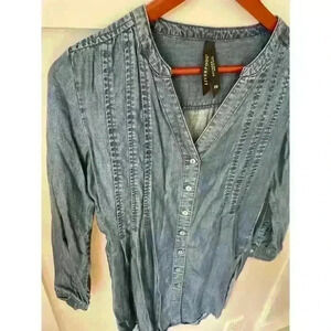 Liverpool V-Neck Button Down Denim Lyocell Tunic, sz XS