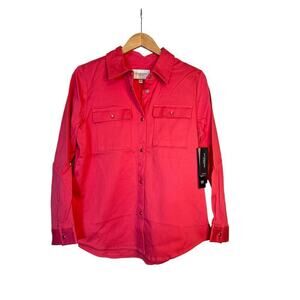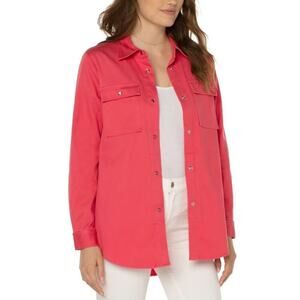 Liverpool Women's Long Sleeve Longline Shacket Button Front Jacket Sz M Pink NWT