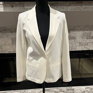 This elegant white blazer is perfect for any occasion. Its sleek design offers a sophisticated look, making it a versatile addition to your wardrobe. Single button closure, 2 pockets in front