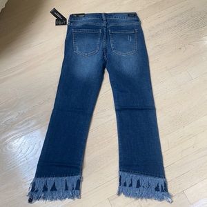 Slightly cropped frayed bottom jeans. Great wash of denim.