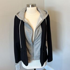 Cotton gray hoodie that is easy to detatch and attach with zippers and buttons