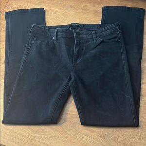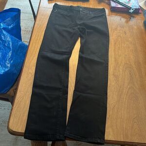 These black jeans offer a streamlined silhouette, perfect for any occasion, combining comfort with a touch of sophistication. No sizing on the jeans. Measurements are listed below. Jeans next to Waist 33 for reference. Assuming waist size to be between 30/31