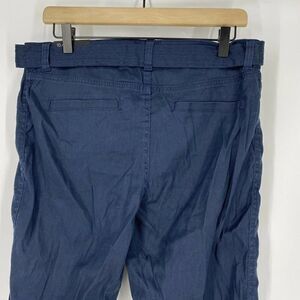 Navy Dave Crop Linen Tie Belt Waist Straight