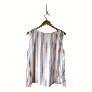 Liverpool Striped Linen Blend Button Side Sleeveless Top Blouse Hot Coral sz M