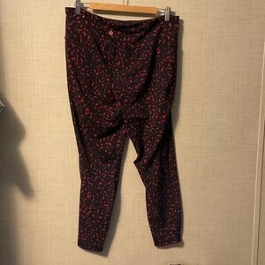 Stylish track pants with a bold red pattern. Comfortable fit. Perfect for active wear.