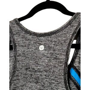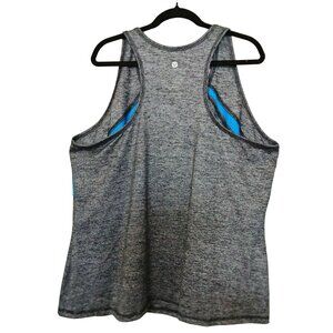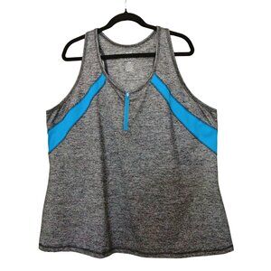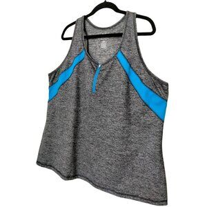 Livi Active Heather Gray & Blue Detail Zip Neckline Athletic Tank Top Size 26/28
