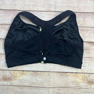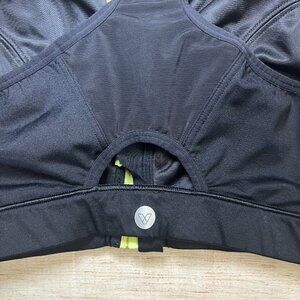 Livi Active Sports Bra 44DDD Black Neon Yellow Front Zip High Impact Plus Size