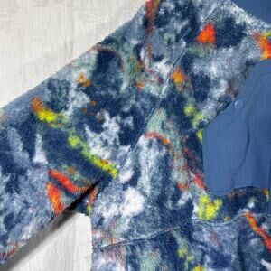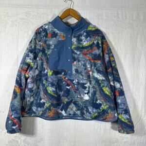 Livi Fleece Pullover 18 20 Blue Abstract Print 1/4 Snap Fuzzy Lane Bryant