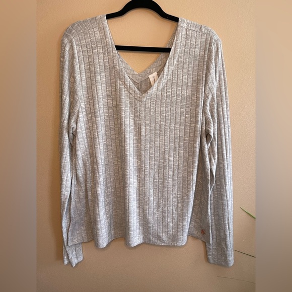 Livi Gray V-Neck Ribbed Women's Top Size 14/16