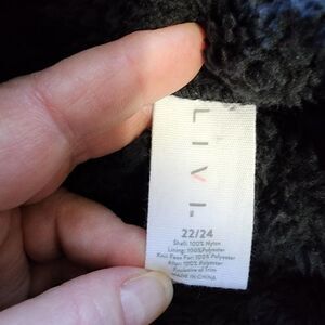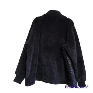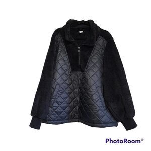 Livi black plush 1/4 zip pull over with large front pocket drawstring bottom in excellent condition 56" bust 28" long. 22/24