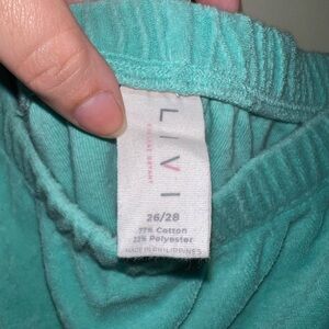 Livi brand romper. Strapless with tie around waist. Terry cloth material. Seafoam green/blue color. Has pockets. Suer comfortable.