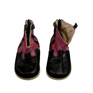 Adorable Livie & Luca pink and brown soft leather boots in toddler size 6. My kid loved these boots. They are still in good condition and super soft. They have a zipper on the side but can just as easily slip on and off.