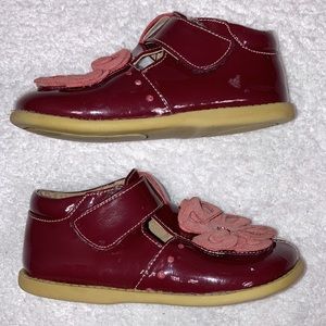 Guc pfsf burgundy patent leather suede flower tee strap shoes size 9 nice string velcro