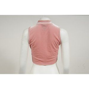 Livin Cool Womens Logo Tank Top Medium Pink White Velour Mock Neck Sleeveless
