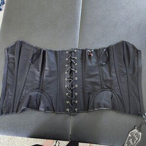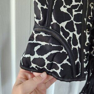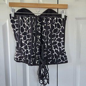 This corset is by Living Dead Souls. It is black and white in an animal print. It has a zip up front and lace up back. It has a sweetheart neckline and boning for support. It is in excellent NWT condition with no holes, rips or stains. Bundle with other items in my closet to get the most out of shipping!