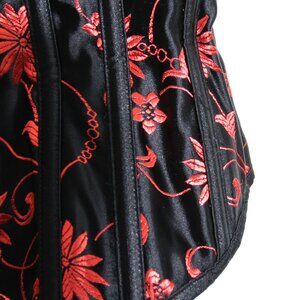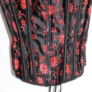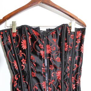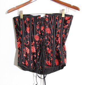 Living Dead Souls Lace-Up Corset Top Strapless Red Black Floral Lace Size Small