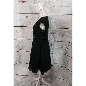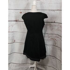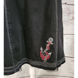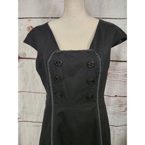 Black retro, cap sleeve pin up dress. Anchor buttons on the front with anchor embroidery on the hem. Polka dot trim throughout and netting on the hem to give it volume. In great condition.
