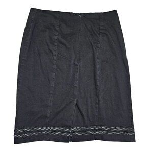 This black Stiletto skirt from Living Dead Souls is adorned with a striking Rose anchor embroidery in red, adding a nautical flair to your outfit. Made from a comfortable blend of cotton and spandex, it offers both style and flexibility. The button-front design and detailed stitching enhance its visual appeal.