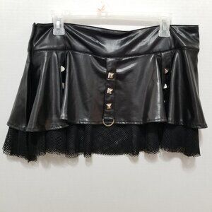 Living Dead Souls skirt XL micro mini goth studded pleather PVC fishnet stretch