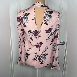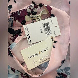 Living Doll Blouse with Keyhole Front Sz Medium Pink Floral Top Bell Sleeve NWT