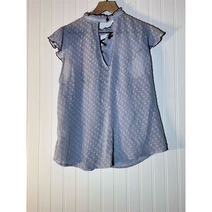 • Features: Swiss Dot Texture, Lace-Up Neckline, Flutter Ruffle Sleeves, Sheer Lightweight Fabric