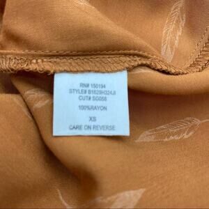 Living Doll Feathers Long Sleeve Button Up Blouse Camel Brown XS