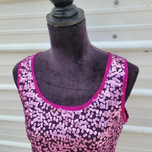 Living Doll Fushia Purple Pink Sequin Sheer Tank Top Zipper Back Soft Shiny sz L