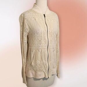Living Doll Ivory Ecru Lace Zip Up Unlined Jacket Size Med