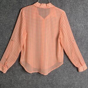 This Living Doll orange & white gingham button-up shirt is a must-have for any fashionable woman's wardrobe. The shirt features roll tab sleeves and a shell button design, adding a touch of elegance to any outfit. The lightweight and semi-sheer material make it perfect for a summer day out or a night on the town. The shirt is branded as Living Doll and is designed for women who want to look their best.
