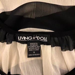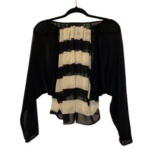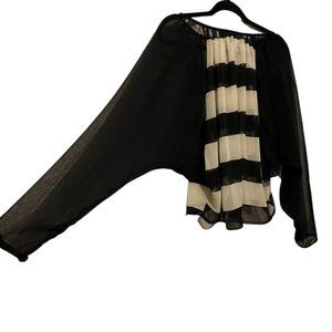 Living Doll Los Angeles Sheer Batwing Sleeve Striped Top - Size Small 100% Polyester 23" Sleeve 21 1/2" Long (shoulder to bottom hemline) Button wrists Black & Cream / Tan stripes No stains, rips, holes Deals: I absolutely LOVE offers! Please don't hesitate to send me an offer! I will always do my best to ship same day or next day! Did I mention I love offers?