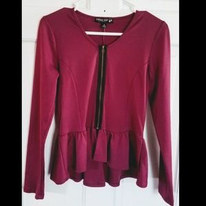 Fuscia peplum long sleeve top by Living Doll with front working zipper. Great condition, never worn!!