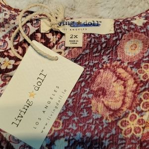 Living Doll Pink Floral Crochet Cold Shoulder Blouse Top Size 2X Bust 42 Inches