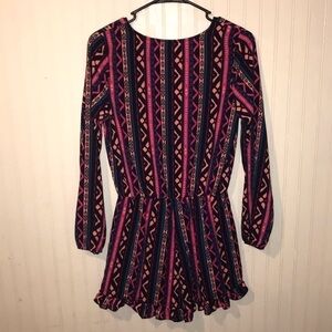 Living Doll V-Neck long sleeve Aztec romper shorts with ruffles size small