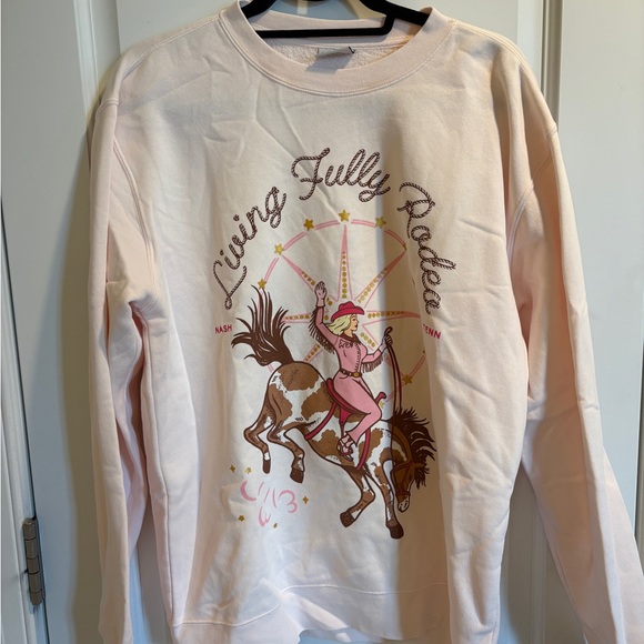 Embrace your adventurous spirit with the Living Fully Rodeo Pink Sweatshirt. This cozy top features a playful rodeo design, perfect for casual outings.