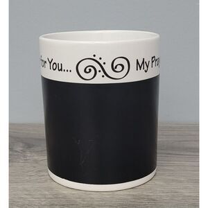 For sale is this Living Grace Religious My Prayer For You Ceramic Write On Chalkboard Coffee Mug Pre-Owned. This gently used coffee mug features a unique chalkboard surface that allows for personalized messages, doodles or labels. While fully functional and structurally sound, it does show a few signs of previous use. There is a small imperfection in the ceramic glaze on the handle--purely cosmetic and does not affect durability. Additionally, the chalkboard section has a few minor surface scratches that are noticeable upon inspection and do not interfere with writing. A charming and practical mug with plenty of life left, perfect for daily coffee, gifting or creative labeling. Please view all photos as they are part of the description. Comes from a Smoke-Free Shop.