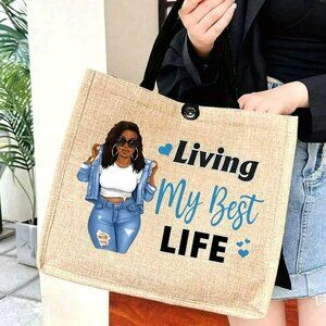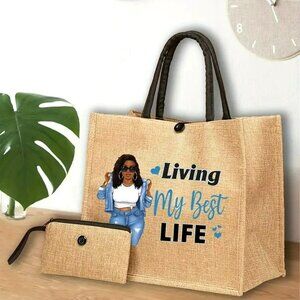 Living My Best Life Tote Bag with Inner Pocket & Zipper Clutch (SKU 0308)