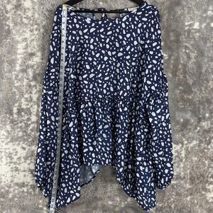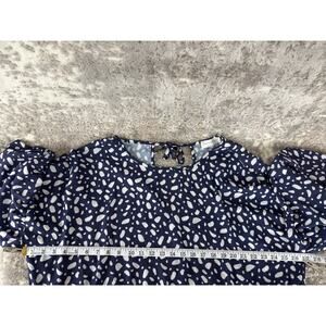 Living My Best Style by Pink Lily Size 2XL Polka Dot Keyhole Tie Blouse Navy Top