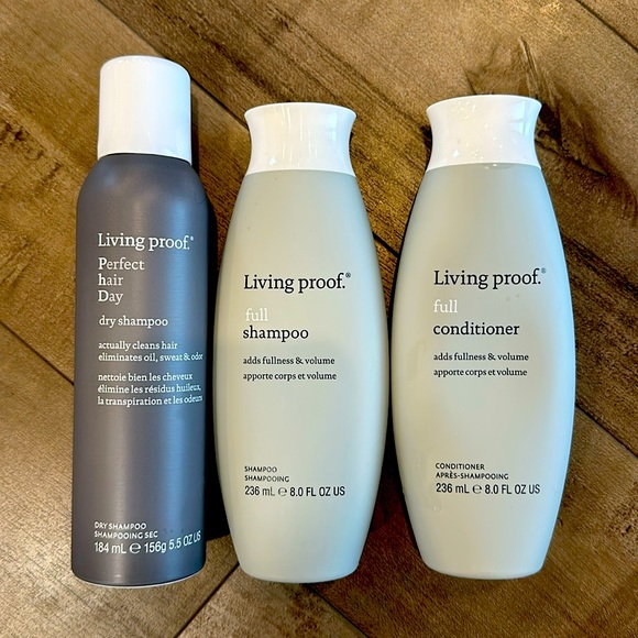 Living Proof Shampoo, Conditioner, and dry shampoo. Used a couple times but just doesn’t work for my hair.