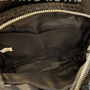 Living Royal Black Sherpa with Rhinstones Belt Bag Adjustable Strap Zipper Closu