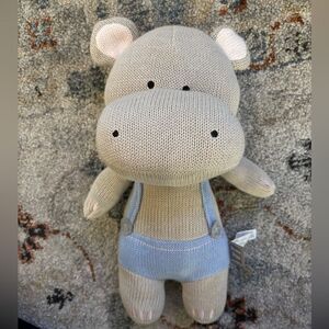 This charming knit hippo toy from Living Textiles is perfect for kids. Its soft gray and blue colors make it a delightful companion for playtime.