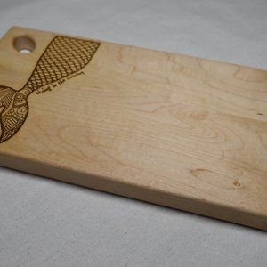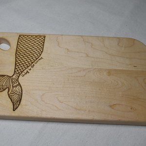 Beautiful solid maple cutting board. Engraved with my whimsical mermaid tail design II and "Living in the Current" inspirational message.