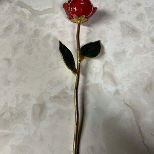 This stunning Gold Dipped Natural Red Rose is a preserved symbol of love and beauty, perfect for gifting or display. Each real rose is meticulously selected, preserved, and then dipped in rich 24k gold to create a lasting masterpiece. The vibrant red petals are perfectly contrasted by the elegant gold stem and leaves. It comes in excellent condition, ready to be cherished as a unique collectible or a thoughtful present for any special occasion.