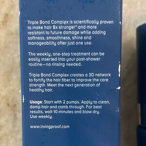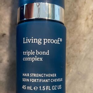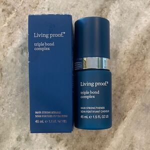 Enhance your hair with Living Proof's Triple Bond Complex. Deep blue packaging signifies strength and care.