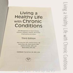 This is a listing for Living a happy life with chronic conditions in soft cover. This focuses on self management of heart disease, arthritis, Diabetes, Asthma, bronchitis, emphysema and others.