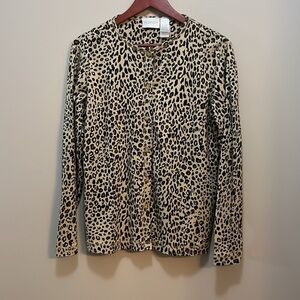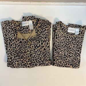 Liz Claiborne cheetah, leopard, animal print casual cotton knit matching sweater set