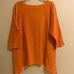 Liz And Jane Scoop Neck Button Down Blouse Women L Top Tunic Pre-Shrink Orange