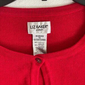 Liz Baker 1X Holiday Sequin Embellished Red Cardigan Sweater Long Sleeve Buttons