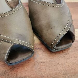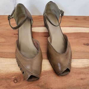 Liz Baker 8.5-9 women's Huarache wedge sandal peep toe patina Brown