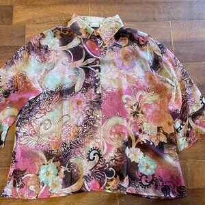 Liz Baker Beautiful Floral Chiffon Top 20W Sheer Over Shirt/Shrug Fairy Core