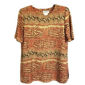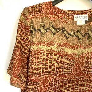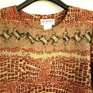 Liz Baker Essentials Top Women Petite Large Brown Multicolor Crinkled Textured